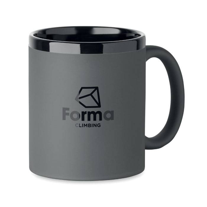 Керамична чаша с меко покритие и черни вътрешност и ръб.
